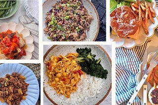 what we’re cooking this week 🍽️: chicken & sweet potato stew, garlic shrimp spaghetti, + more!